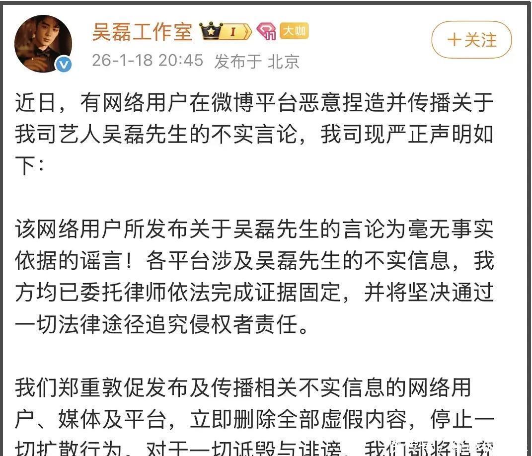 吴磊这边辟谣速度着实让不少粉丝群体羡慕,但辟谣话术太笼统,也没有直接点名侵权人,毕竟网友都是见过世面的,认为只要不告爆料源头就可信度大打折扣。而爆料人并没有点名就是演员吴磊,在他没有回应前,吴磊同名的CV解说等都在猜测范围内。