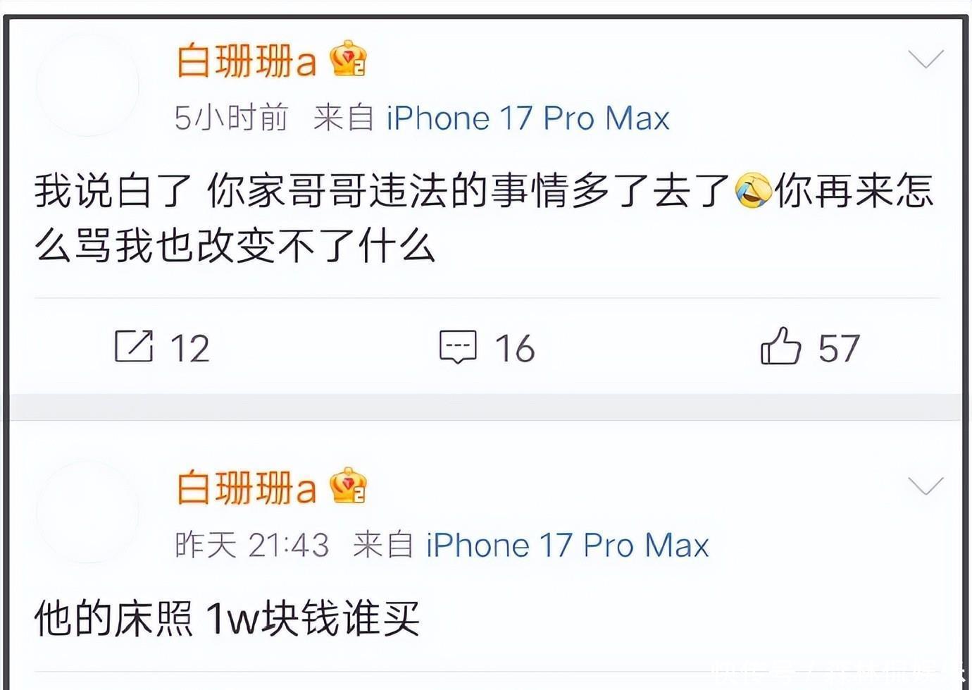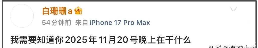 尽管演员吴磊辟谣了,但没有点名的瓜还是激发了乐子人的兴趣,他们根据白珊珊的多篇博文,扒出了一些东西。比如,白珊珊曾发文痛斥“我需要知道你2025年11月20号晚上在干什么”,那么这个时间节点发生了什么事儿呢?到底有什么事儿是违法的呢?大家不妨动脑子想想