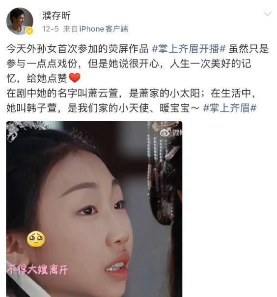 最近,72岁的濮存晰发了一篇文章给他外孙女宣传,结果网友们都炸开了锅。其实是他11岁的外孙女韩子萱演了一部短剧,让他觉得特别骄傲,所以就发了个文祝贺她。