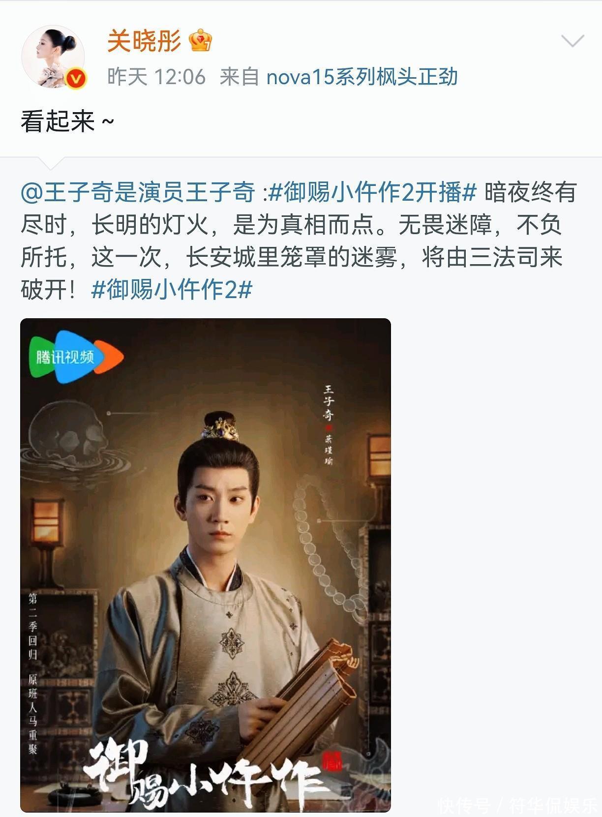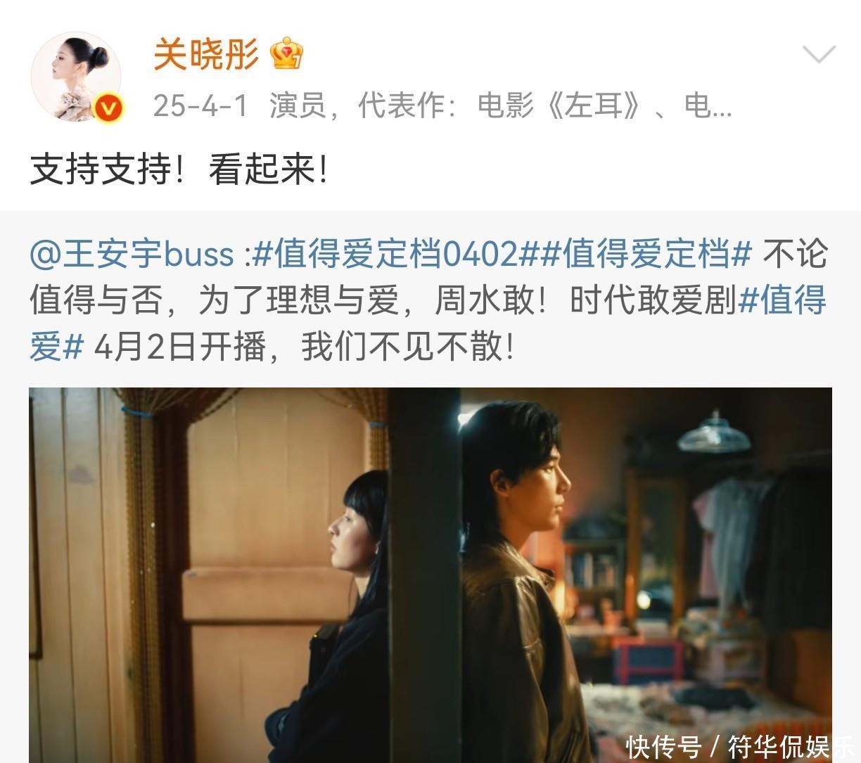 就比如1月15日中午,关晓彤就在社交平台大大方方为一起合作拍摄《生逢其时》的王子奇宣传新剧。