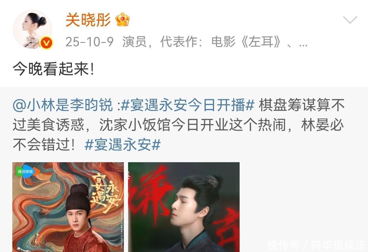 关晓彤自从与鹿晗分手的传闻传开后,2025年开始关晓彤就开始当起了剧宣的“宣传委员”,在李昀锐和王安宇等男演员新剧上线时,关晓彤都为他们宣传了。