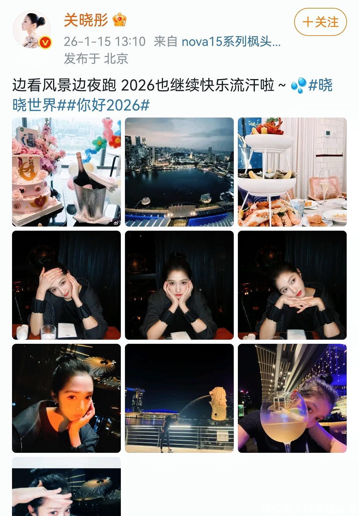 1月15日下午,关晓彤还在社交平台发布了自2026年个人的动态,爱健身的晓彤又去跑步了,还边跑步边看美景,再奖励自己一顿美美的大餐,不得不说关晓彤真的有在好好爱自己。